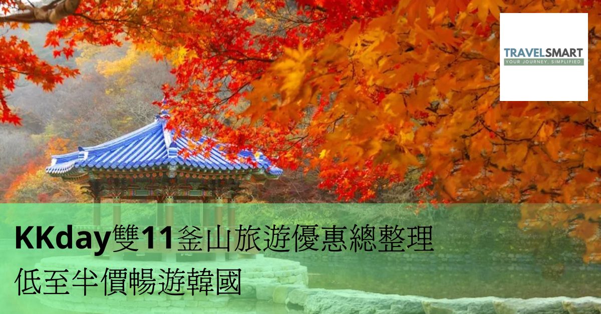 把握一年一度的雙11優惠時機,規劃您的釜山之旅!多款產品低至半價,配合專屬優惠碼還能享受額外折扣,讓您的韓國旅行既省錢又豐富。